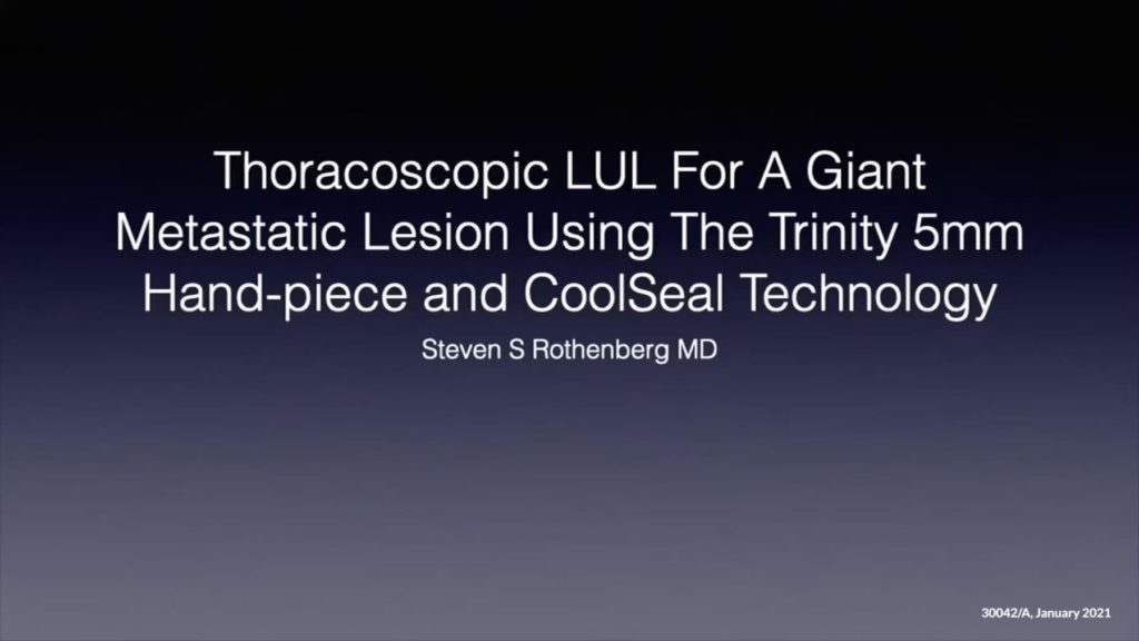 Dr. Steven Rothenberg walks through a Thoracoscopic LUL for a Giant Metastatic Lesion Using the Trinity 5mm Hand-piece and CoolSeal Technology