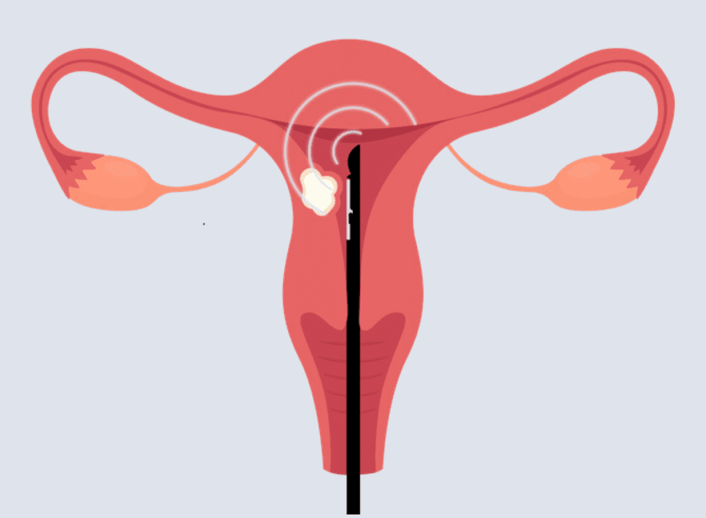 Once the fibroid is located, the tip of the device is inserted into the center of the fibroid.